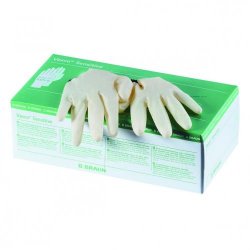 Guanto non sterile, per esami medici, in gomma di lattice naturale, con bordo arrotolato, ambidestro. Monouso. Senza additivo Thiuram. Qualità garantita. Conforme alle norme DIN EN 455. Fornito in scatola dispensatrice da 100 guanti.
