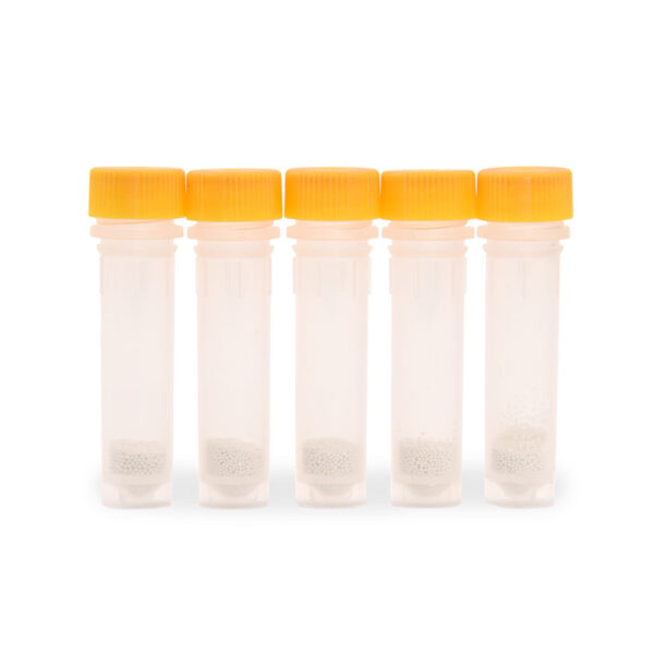 Pratica macinatura a umido o a secco. Sette diversi tipi di mezzi per la lavorazione di campioni vegetali, campioni molli, funghi, lieviti, batteri o campioni ambientali. I tappi filettati sono codificati per colore per una facile identificazione.
