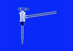 Rubinetto laterale per buretta, Vetro Borosilicato 3.3 Tipo spillo PTFE, apertura valvola NS Ø Foro 0-2,5 mm